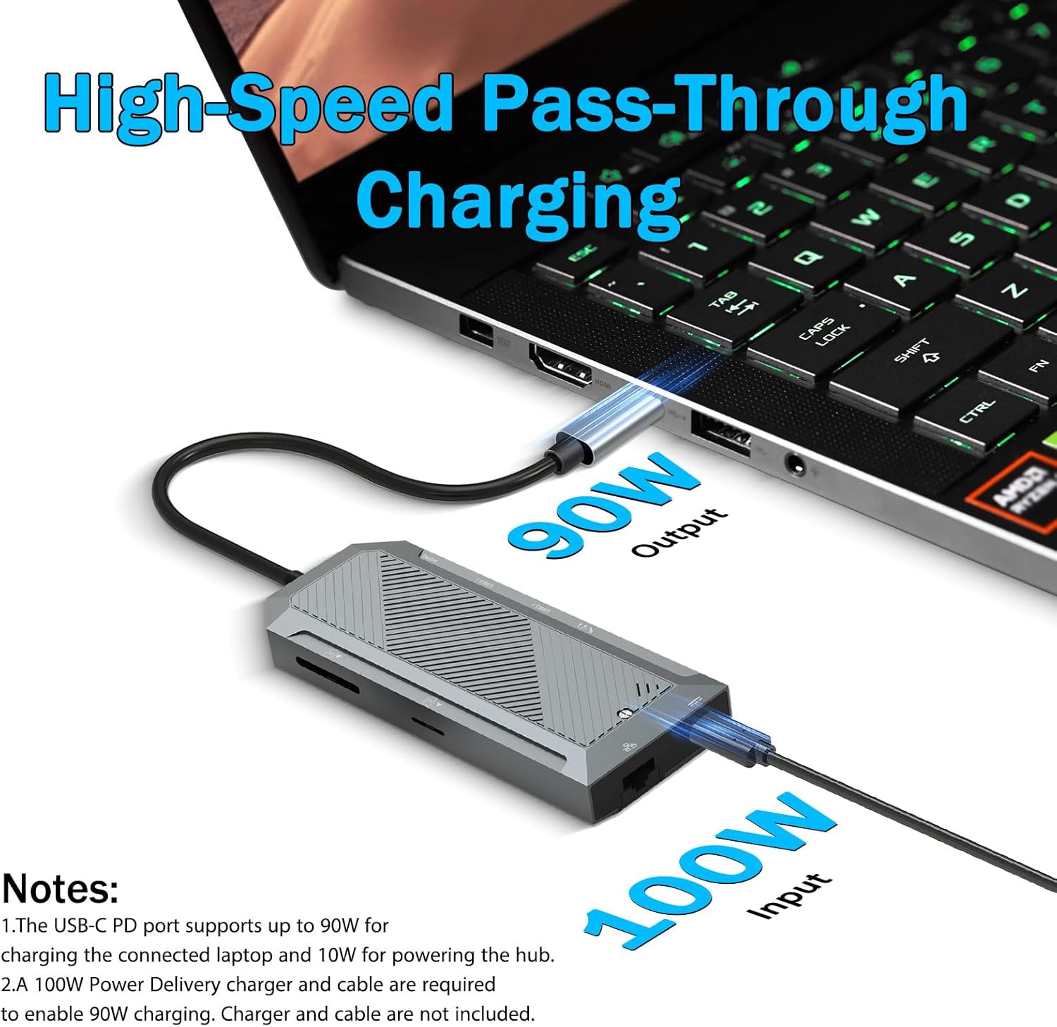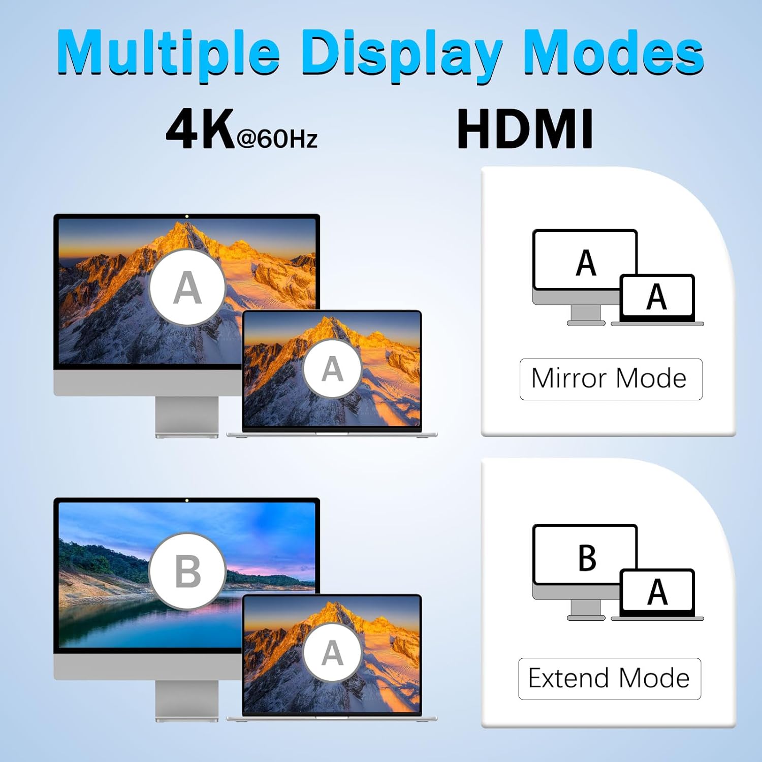 Hub kasebut kalebu port HDMI sing ndhukung resolusi 4K ing 60Hz, menehi visual sing lancar lan reproduksi warna sing akurat. Fitur iki penting banget kanggo para profesional sing nggarap desain grafis, produksi video, lan presentasi.