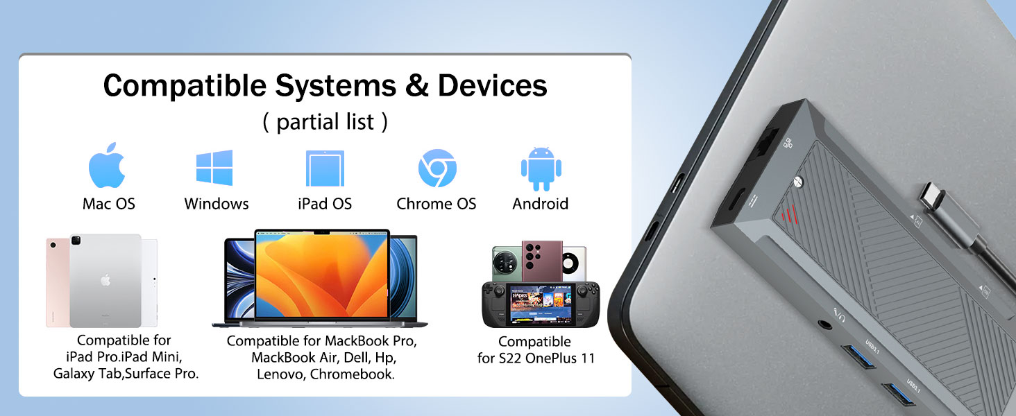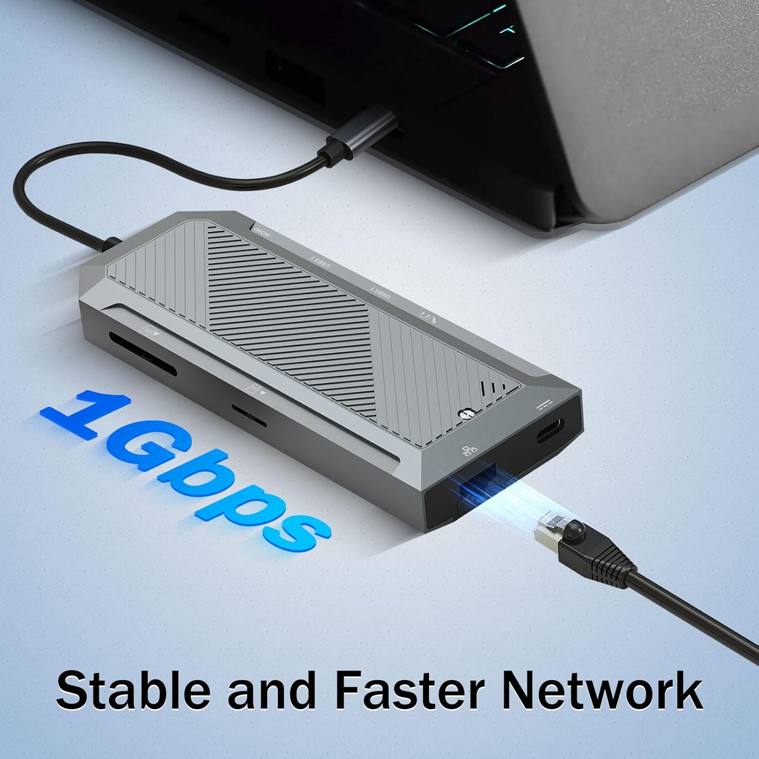 Laptop lan tablet modern dadi saya kuat lan portabel, nanging akeh piranti sing ngorbanake port penting kanggo desain sing luwih ramping. Akibaté, profesional, pangripta, lan pangguna saben dina kerep mbutuhake solusi konektivitas serbaguna sing nggedhekake kemampuan piranti tanpa ngrusak kinerja. 9-in-1 USB-C Hub karo SSD Enclosure kanggo M.2 NVMe 4K 60Hz HDMI Splitter nyedhiyakake solusi kabeh-ing-siji sing nggabungake transfer data kanthi kacepetan dhuwur, output tampilan sing cetha banget, lan fungsionalitas panyimpenan SSD terpadu.