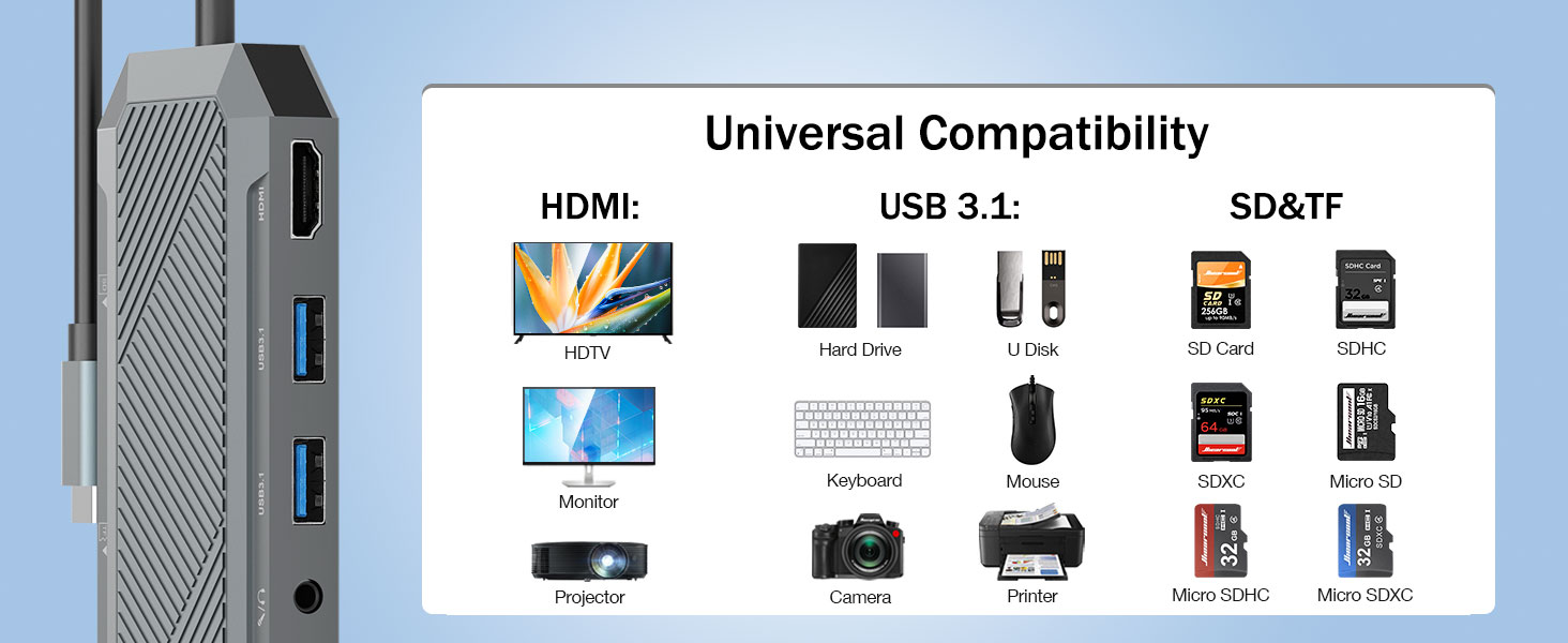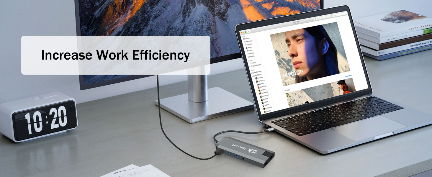 Apa digunakake kanggo karya profesional, produksi kreatif, lelungan bisnis, utawa setelan kantor ngarep, hub iki nawakake cara praktis lan efisien kanggo nggedhekake kinerja piranti modern.
