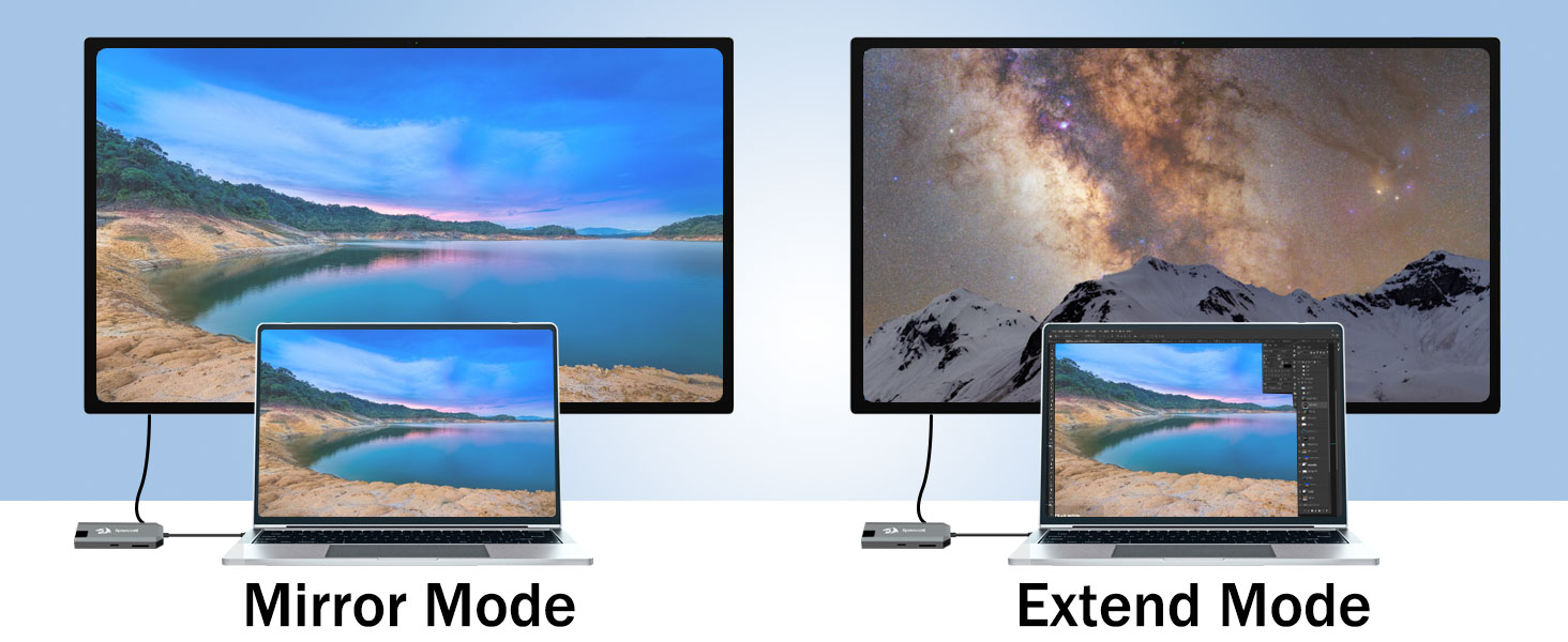 Pangguna bisa gampang nyambungake laptop menyang monitor eksternal, televisi, utawa proyektor kanggo ruang kerja sing ditambahi utawa pengalaman ndeleng immersive.