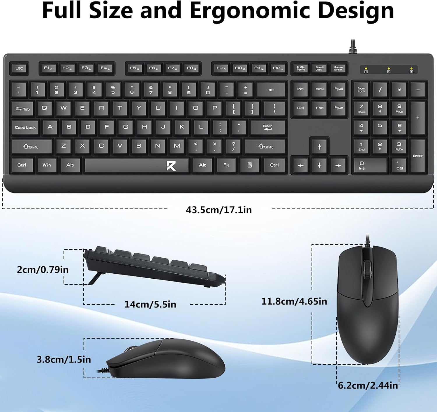 Kombo Keyboard Kabel lan Mouse Black BC7543 - Kinerja sing Bisa Dipercaya kanggo Pakaryan, Sinau, lan Komputasi Saben Dina