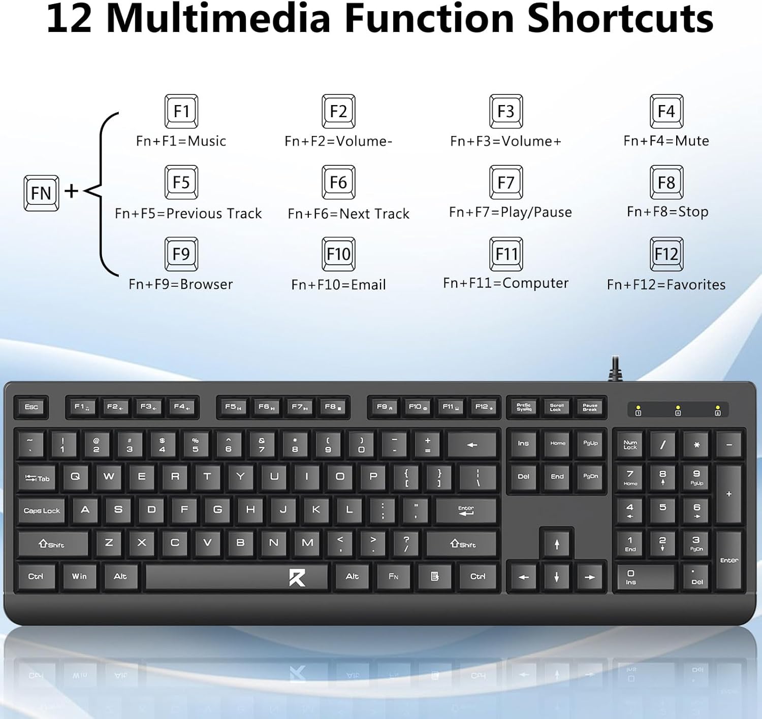 Papan tombol ukuran lengkap kanthi keypad numerik ndhukung entri data sing efisien, karya spreadsheet, lan nyunting dokumen.