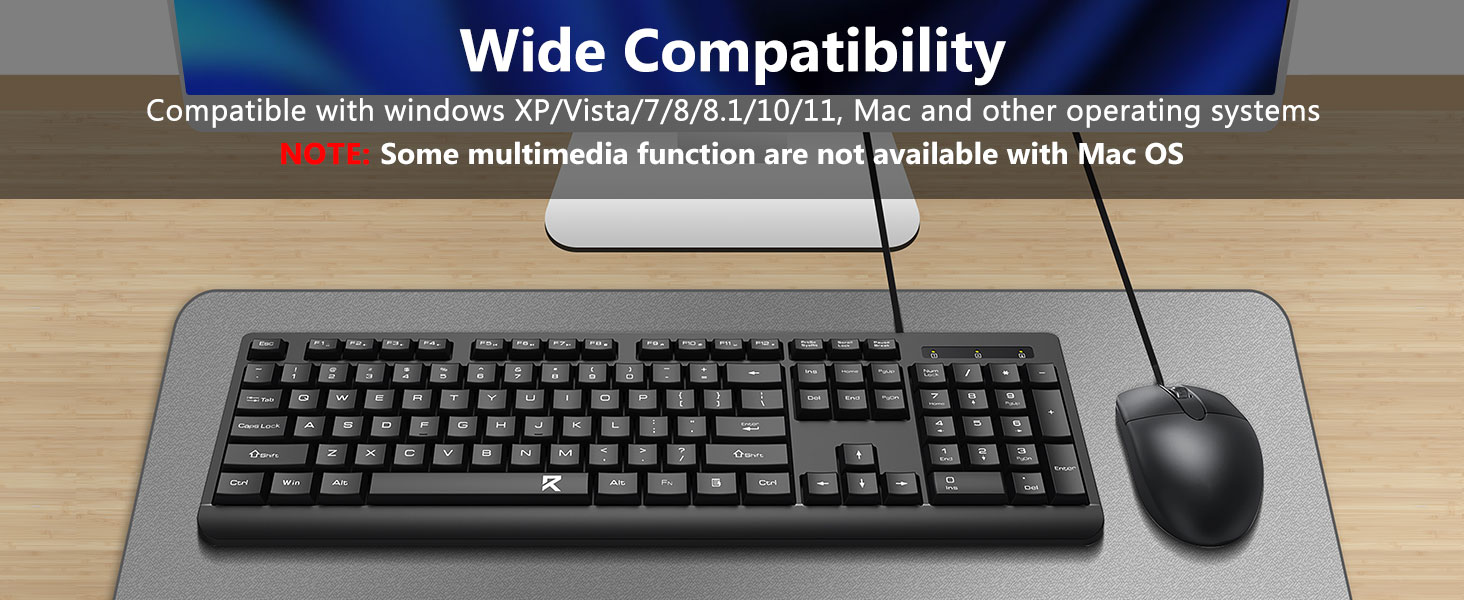 Black BC7543 Wired Keyboard lan Mouse Combo dianggo karo sawetara saka sudhut sistem operasi lan piranti, njamin keluwesan kanggo macem-macem lingkungan komputasi.