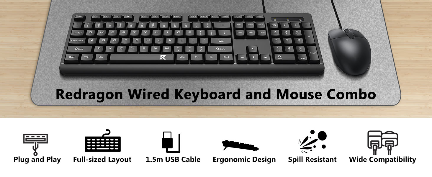 Dirancang kanggo linuwih jangka panjang, keyboard lan mouse digawe saka bahan awet sing bisa digunakake saben dina. Rampung ireng klasik nglengkapi macem-macem persiyapan komputer, saka workstation kantor nganti meja ngarep.