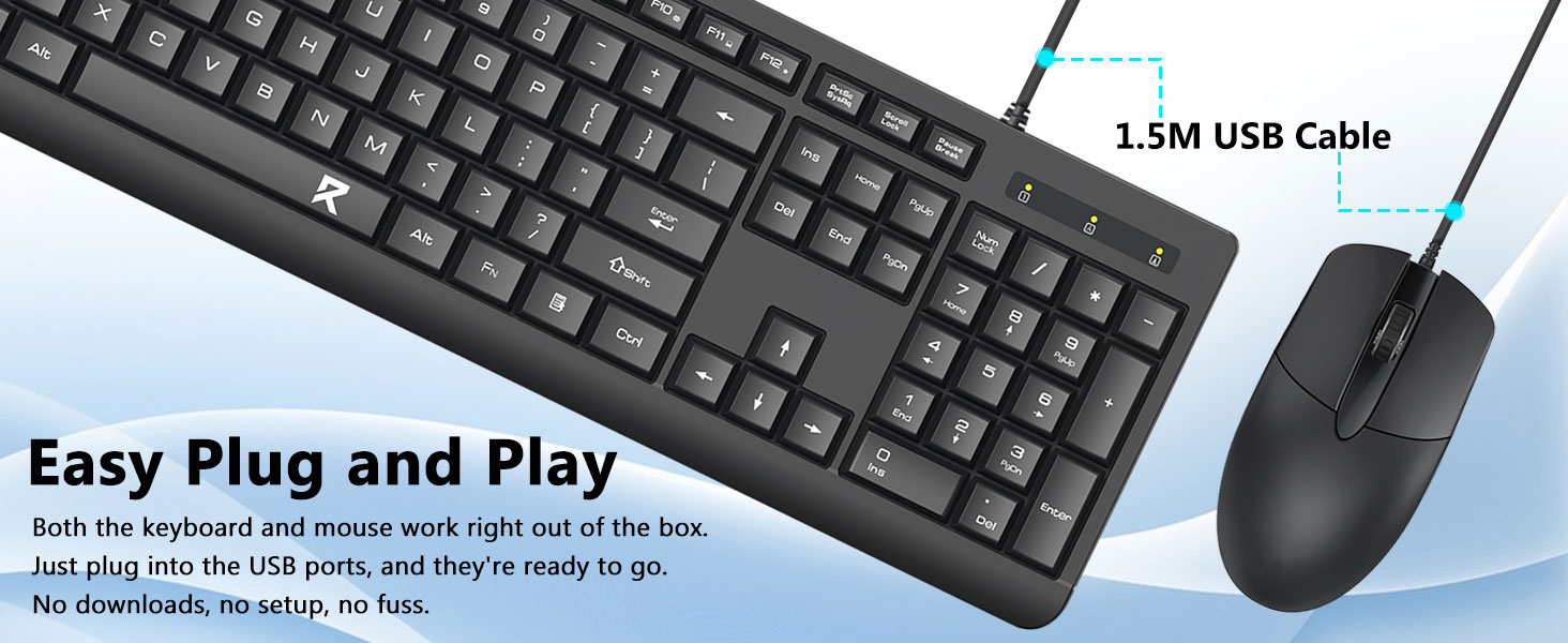 Fungsi plug-and-play ngidini pangguna nyambungake keyboard lan mouse kanthi cepet tanpa nginstal piranti lunak tambahan.