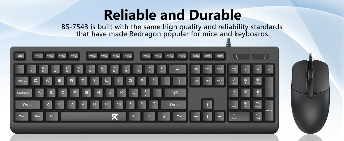 Black BC7543 Wired Keyboard lan Mouse Combo nggunakake sambungan USB kabel sing njamin kinerja stabil lan konsisten. Piranti kabel ngilangi masalah konektivitas sing asring digandhengake karo periferal nirkabel.
