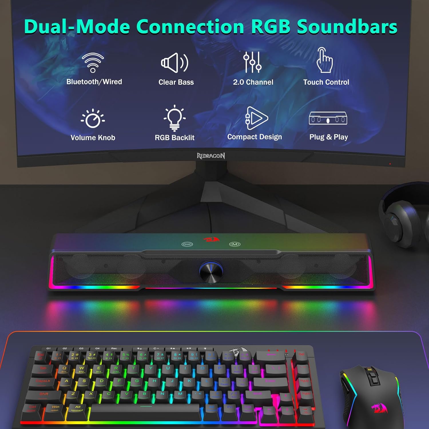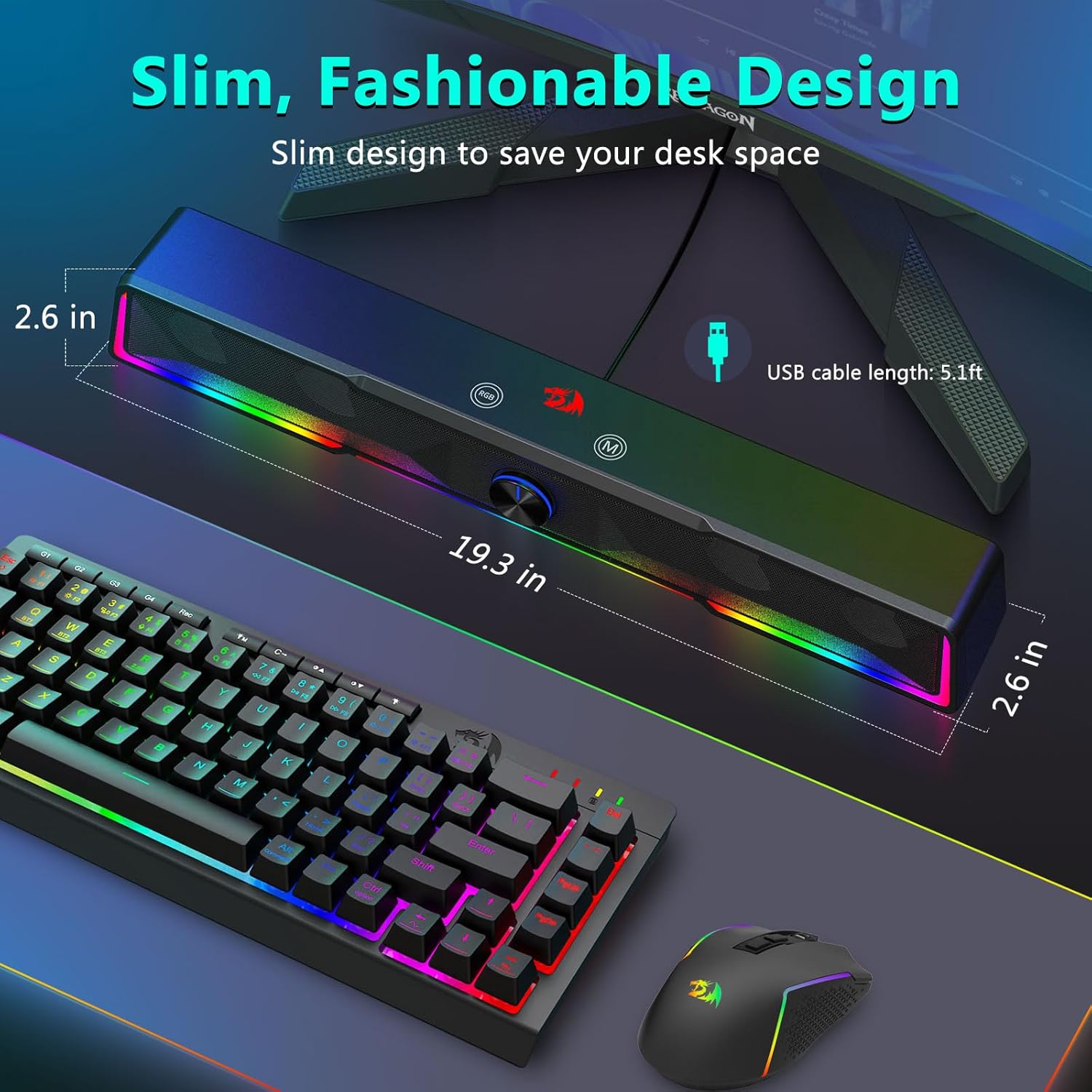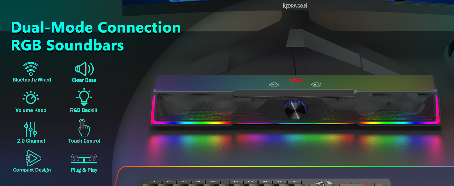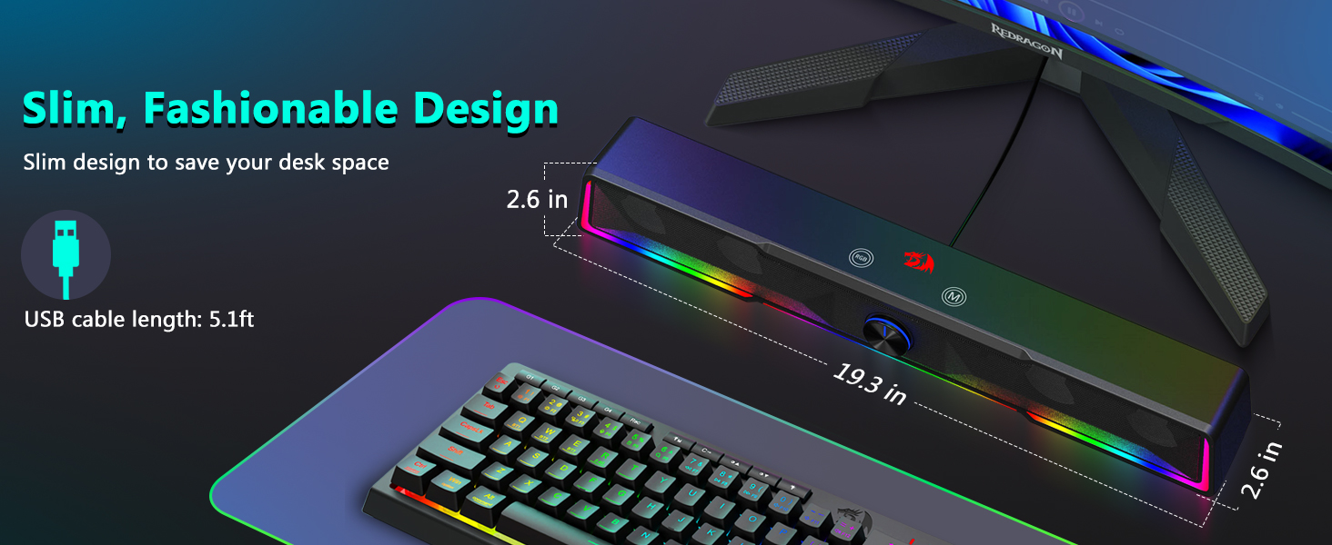 Struktur soundbar terintegrasi ngidini speaker nyebarake swara kanthi merata ing area meja, nggawe lapangan audio sing luwih akeh dibandhingake karo speaker kompak tradisional. Desain iki nambah pengalaman ngrungokake musik, film, game, lan rapat online.