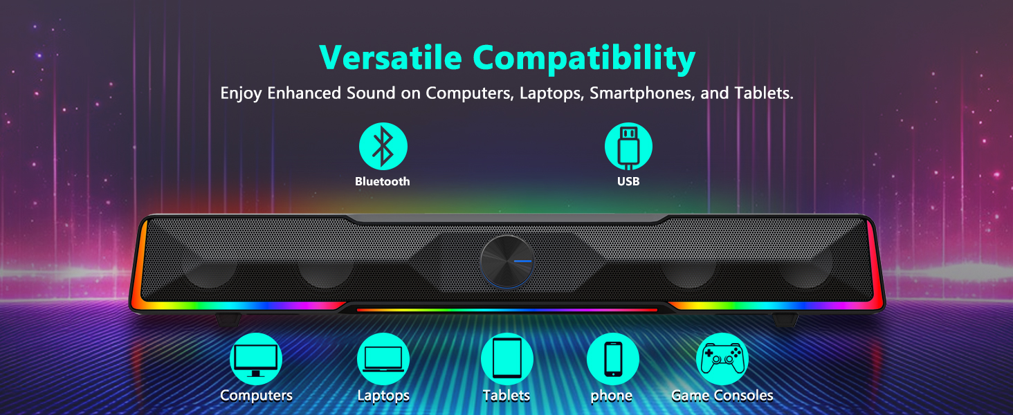 A: Black GS516 Bluetooth/USB Wired Connection Soundbar Volume Knob Speaker Komputer kompatibel karo laptop lan komputer desktop. Pangguna bisa nyambung liwat USB kanggo audio kabel utawa nggunakake Bluetooth kanggo streaming nirkabel.