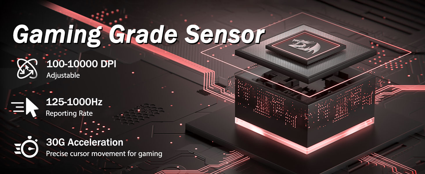 5 Tingkat DPI sing luwes lan 4 polling tarif- M719 Mouse dirancang kanthi 5 tingkat DPI sing kasedhiya: DPI 400/800/1600/2400/4000. Gampang ngalih ing antarane kabutuhan game sing beda. DPI bisa diatur kanthi bebas kanthi ± 100 saka 100 nganti 10000 liwat piranti lunak kanggo ketemu kabeh kabutuhan. 4 Jalaga polling luwes: 125Hz / 255Hz / 500hz / 1000Hz, tarif polling dhuwur njamin gerakan sing lancar lan cepet.