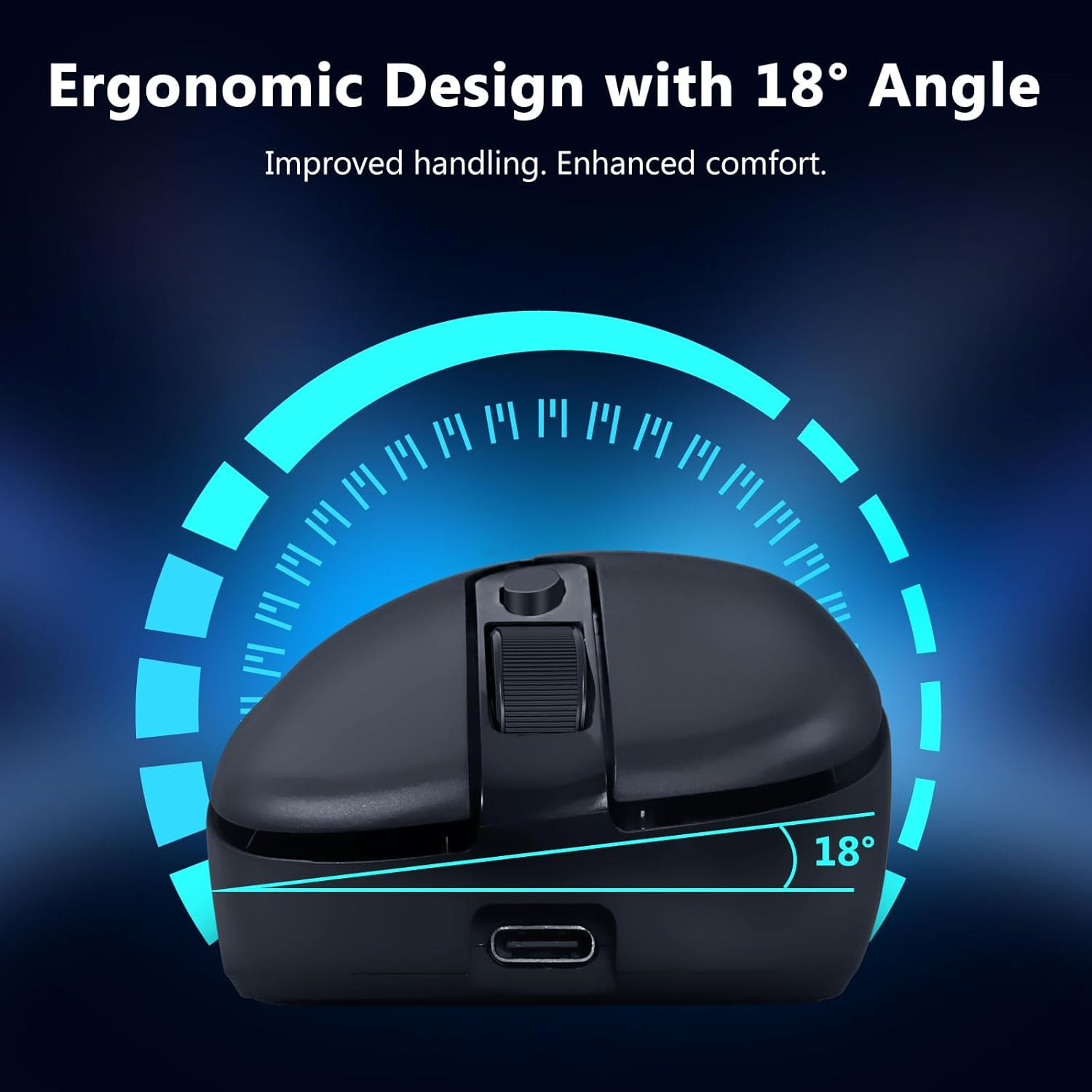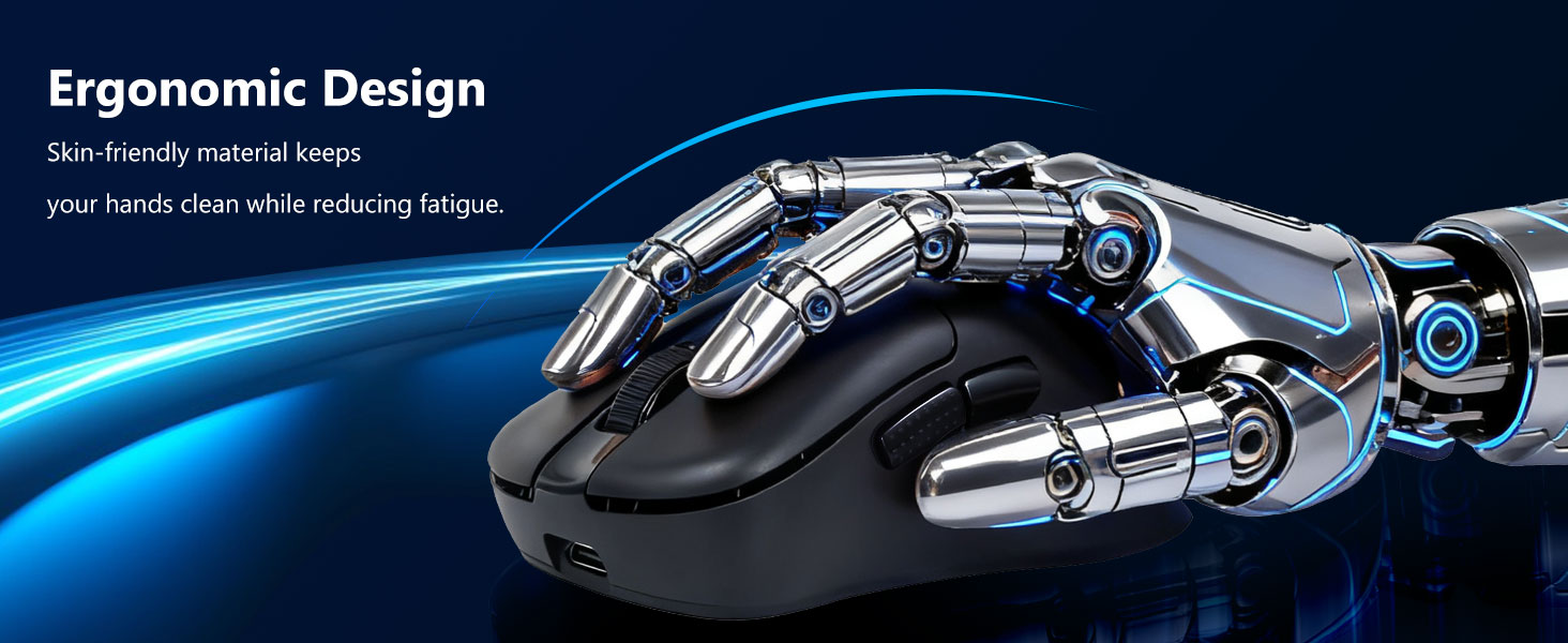 Mouse dibentuk kanggo ndhukung posisi tangan alami, nampung gaya genggeman sing beda. Iki mbantu nyuda rasa kesel sajrone panggunaan sing dawa.