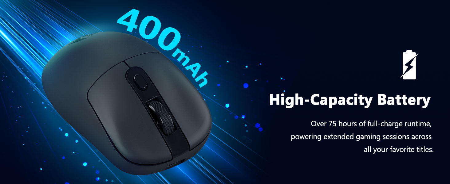 Mode nirkabel 2.4GHz njamin input sing stabil lan responsif, nyuda lag lan njaga kontrol sing konsisten sajrone aktivitas sing cepet.