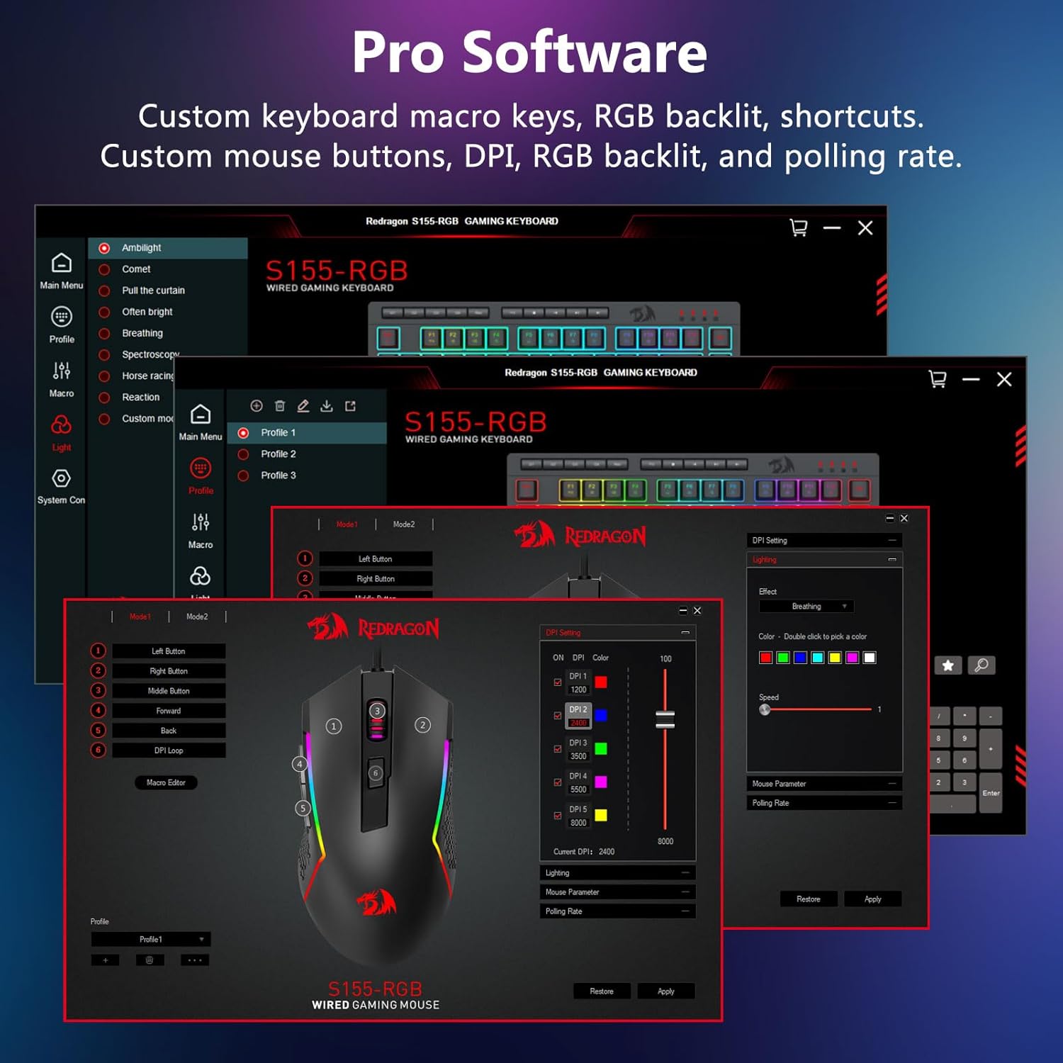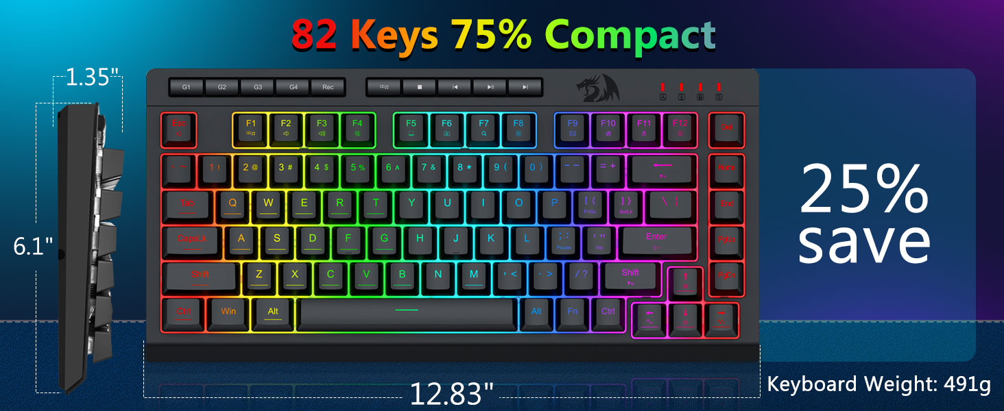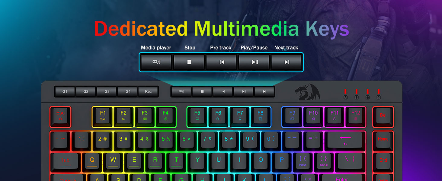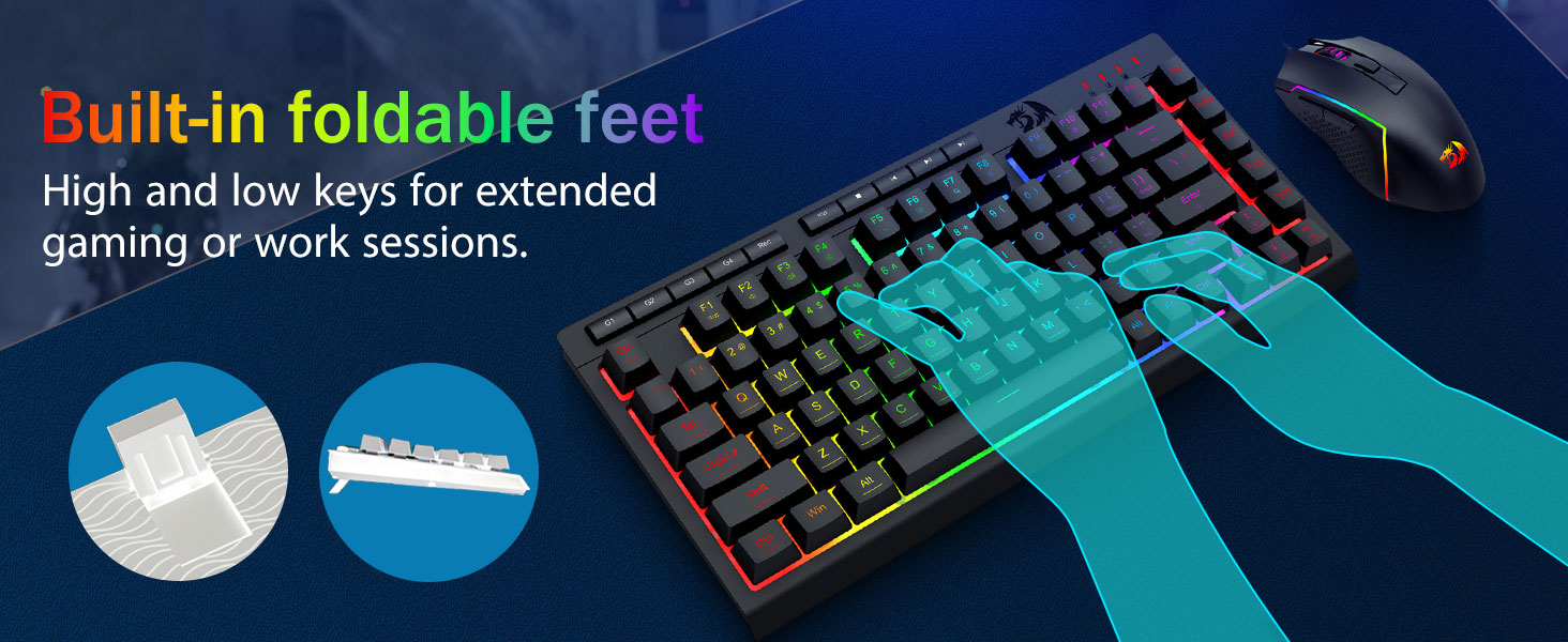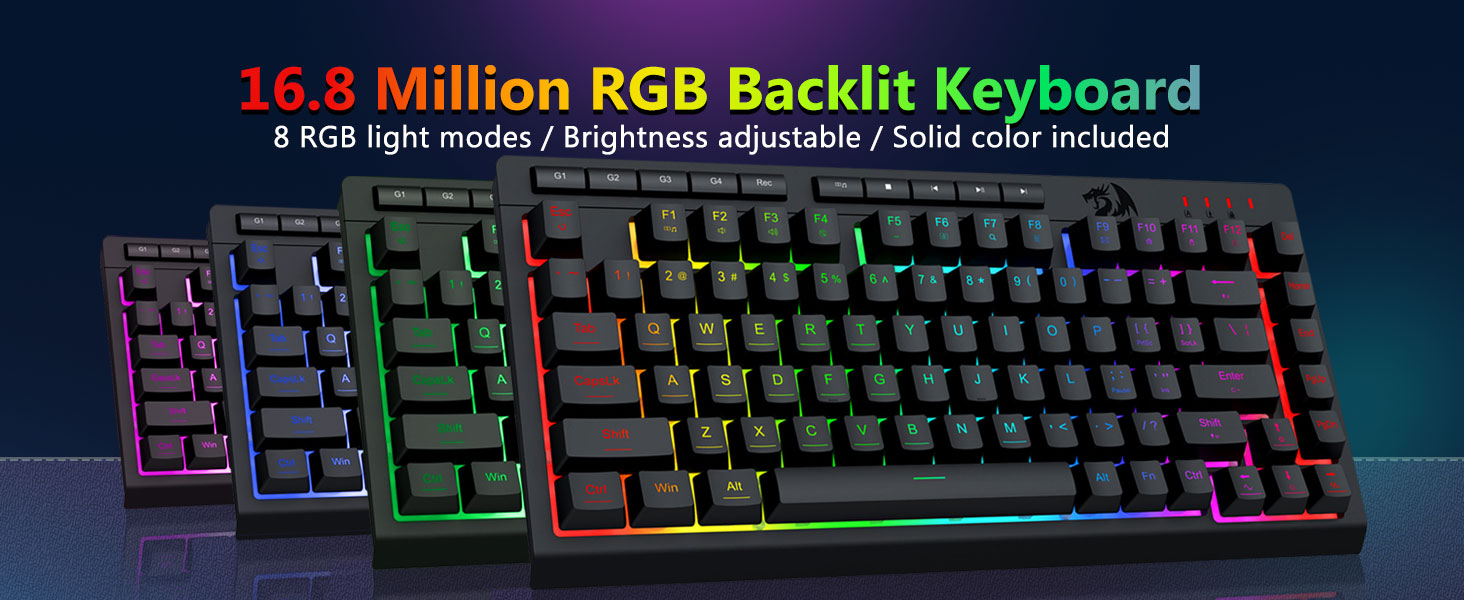 【Keyboard game RGB lan mouse】Keyboard game 8 mode Lampu RGB sing kudu dipilih & mouse game duwe 8 efek cahya kanggo ngalih, lan keyboard bisa diatur kanggo pilihan 4 level bisa cocog karo pilihan sampeyan kanthi seragam seragam. Apa pesawat kasebut minangka cahya siji, efek entheng utawa ora ana cahya, keyboard game Redragon bakal nyukupi kabutuhan!