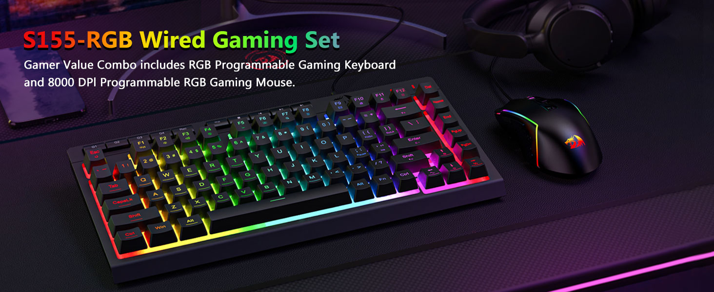 Keyboard game backlit Wired S155 RGB lan combo mouse