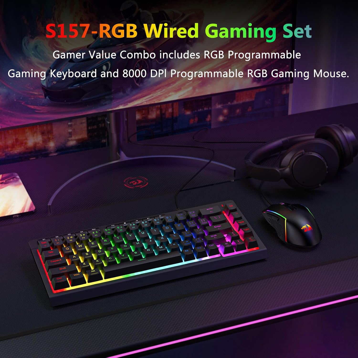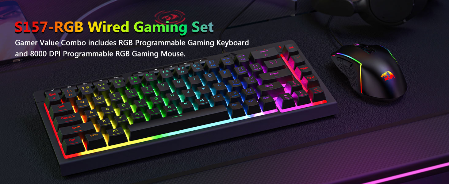 Black S157 RGB Backlit Wired Gaming Keyboard lan Mouse Combo