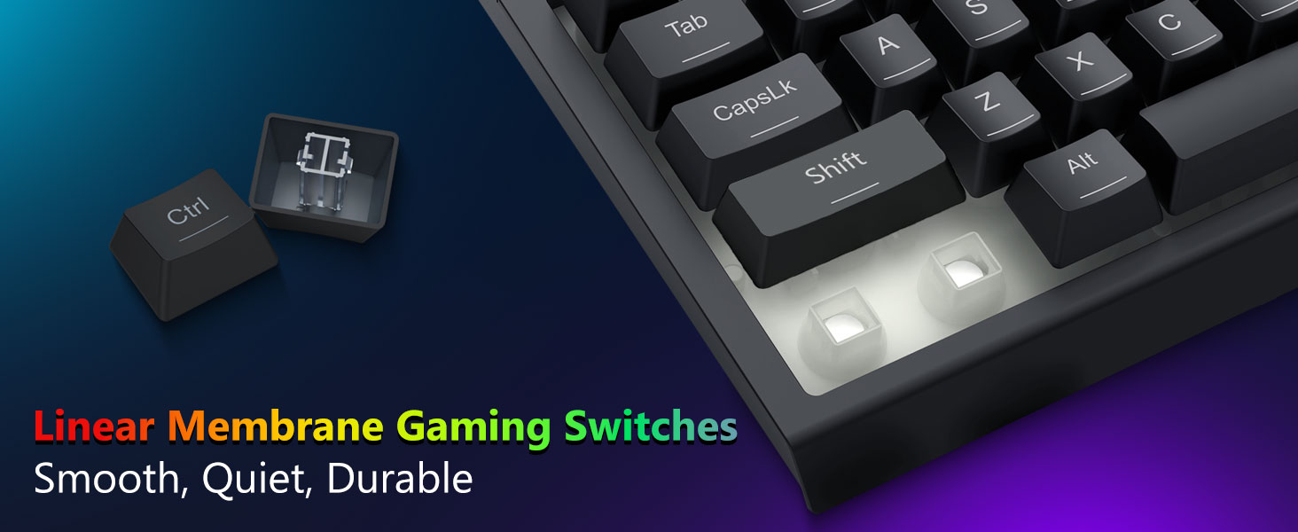 Tombol dirancang kanggo menehi umpan balik sing konsisten lan aktuasi sing seimbang. Iki njamin ngetik akurat lan input dipercaya sajrone game utawa panggunaan kantor.