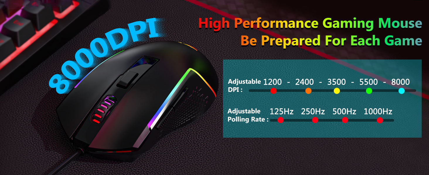 Mouse sing kalebu dilengkapi sensor optik sing ndhukung pelacakan sing stabil lan gerakan kursor sing lancar. Setelan DPI sing bisa diatur ngidini pangguna cocog karo sensitivitas karo tugas sing beda-beda.